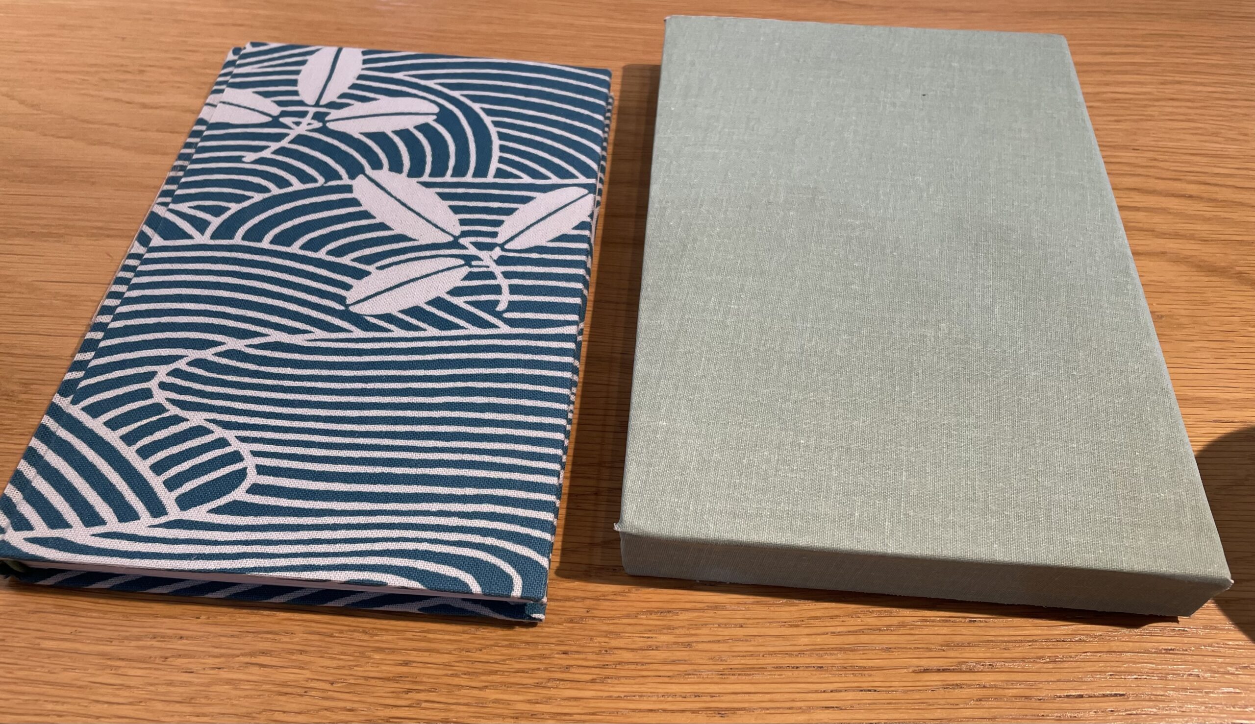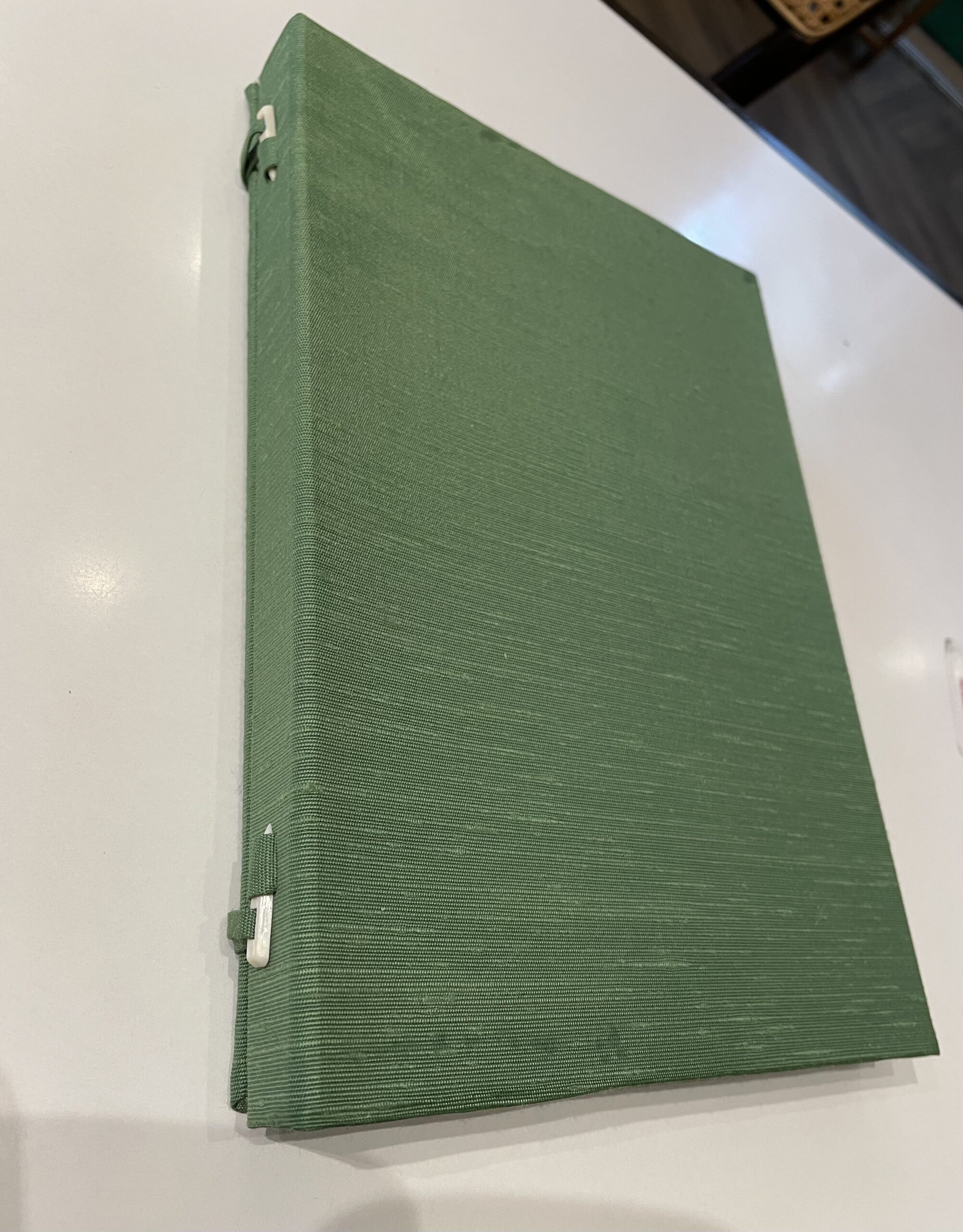 手製本工房はクロス帳も、紙の見本帳も揃っているので、こういう時ささっと調べてもらえるのが有難い。