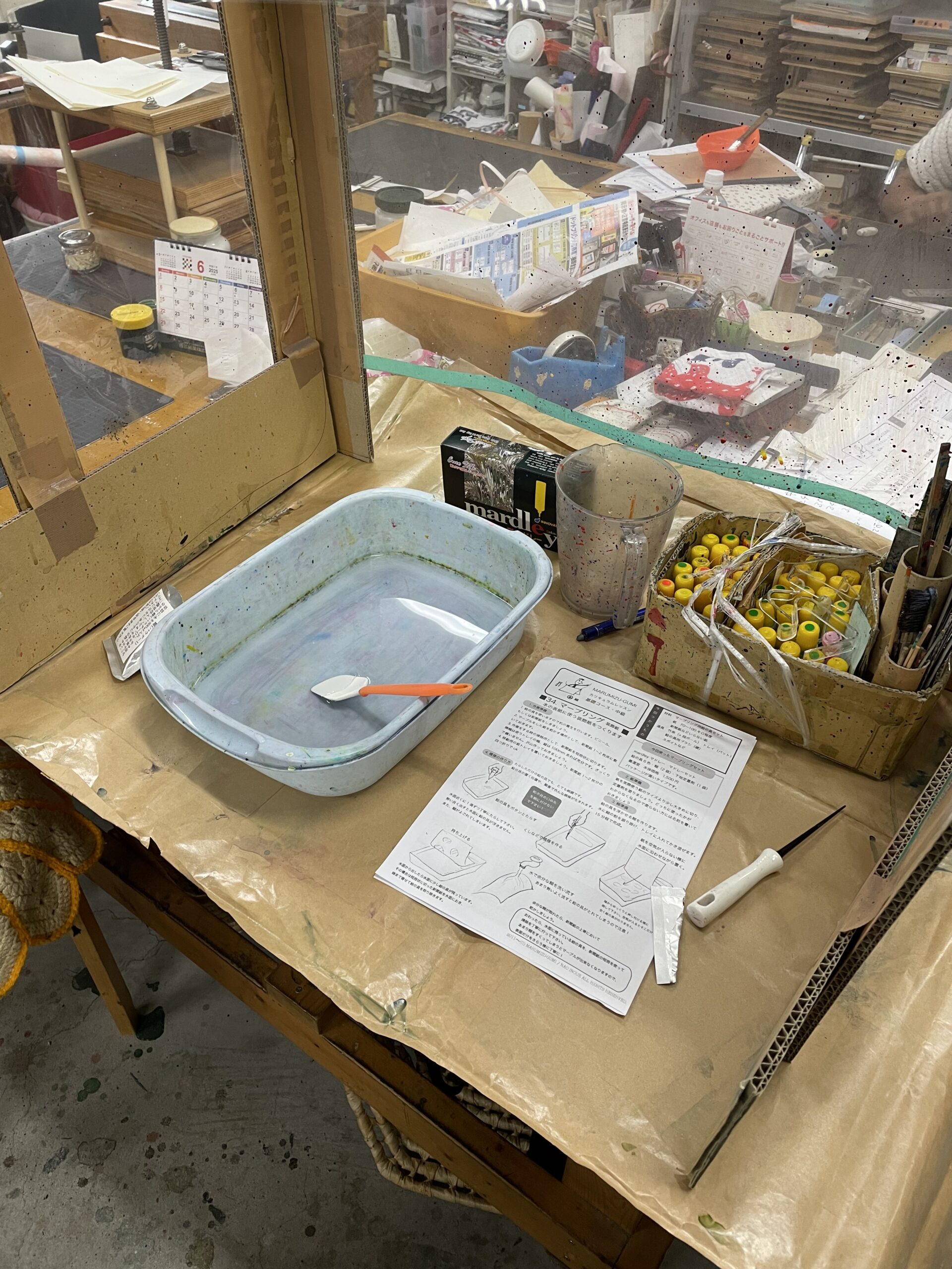 薄い陶器に合わせたのか表紙も薄いボール紙を使っているそう。そして見返しにやはり楽しい創作メモが印刷されている。