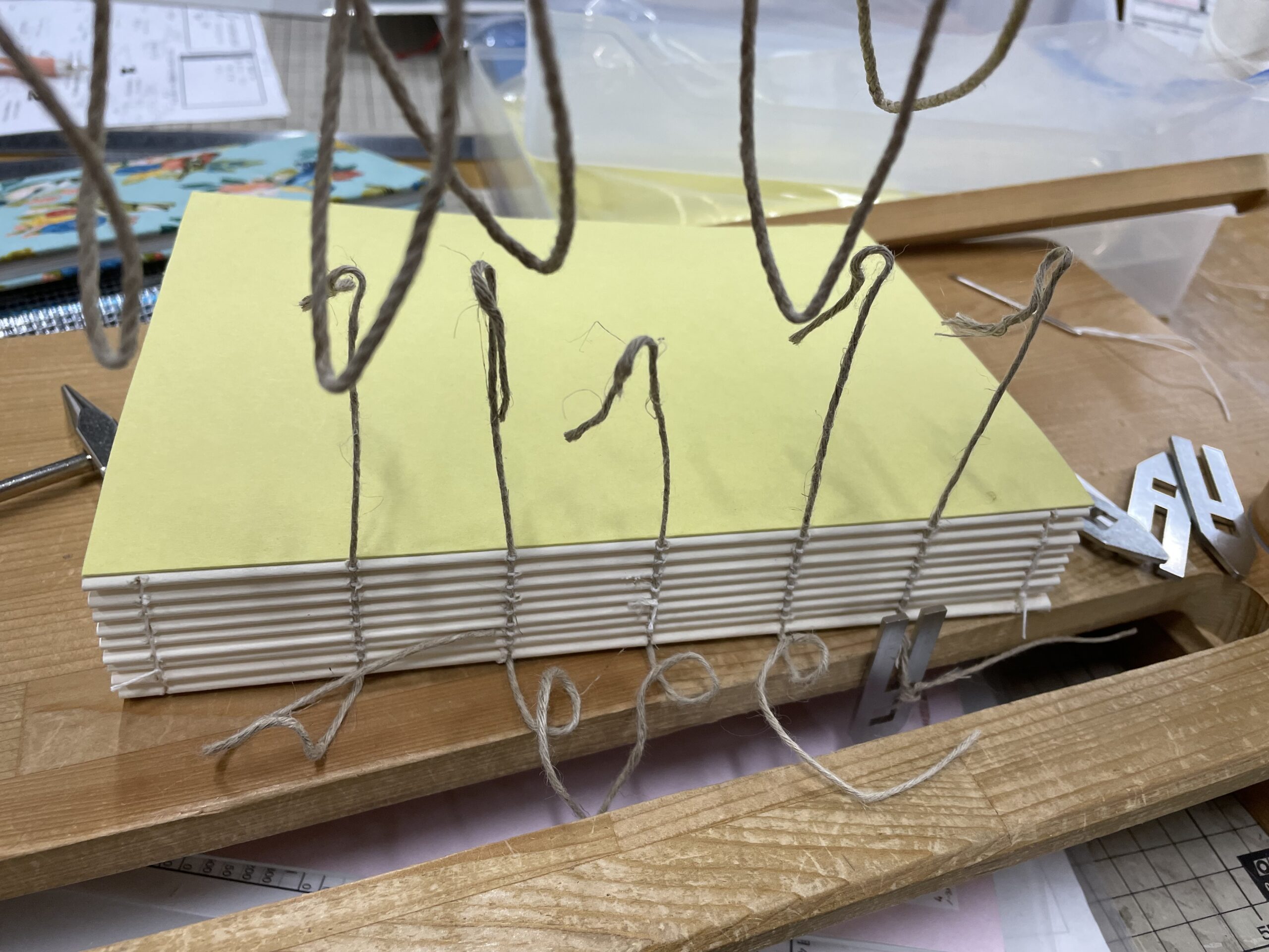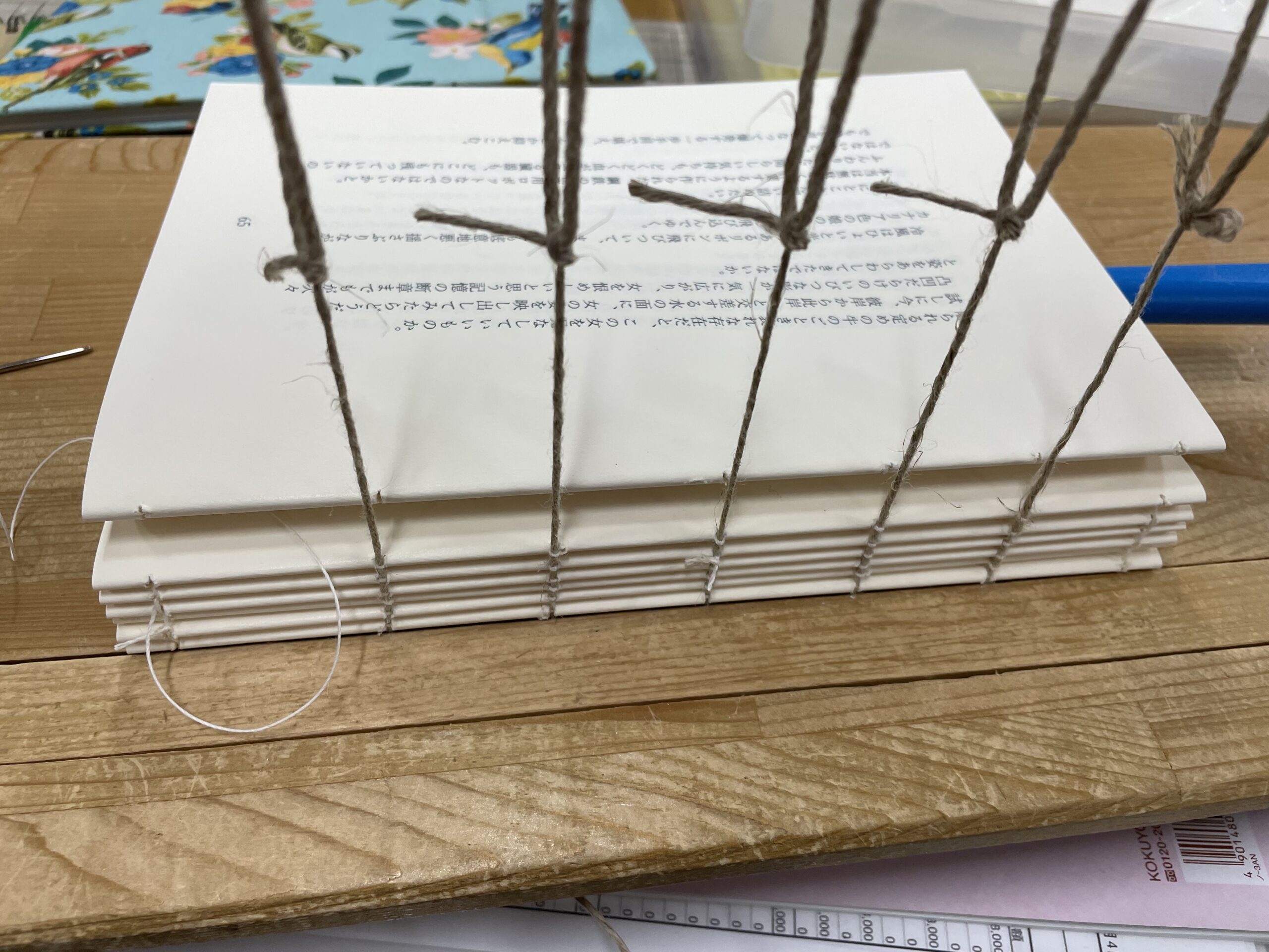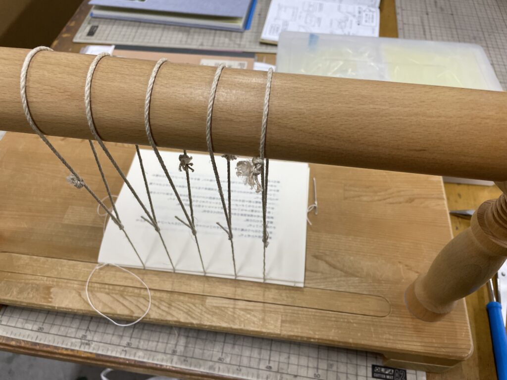 でも基礎過程で初めて糸かがり台に触れた時と比べたら、セッティングも早くなってきた。あのときはチンプンカンプン状態だったもの。