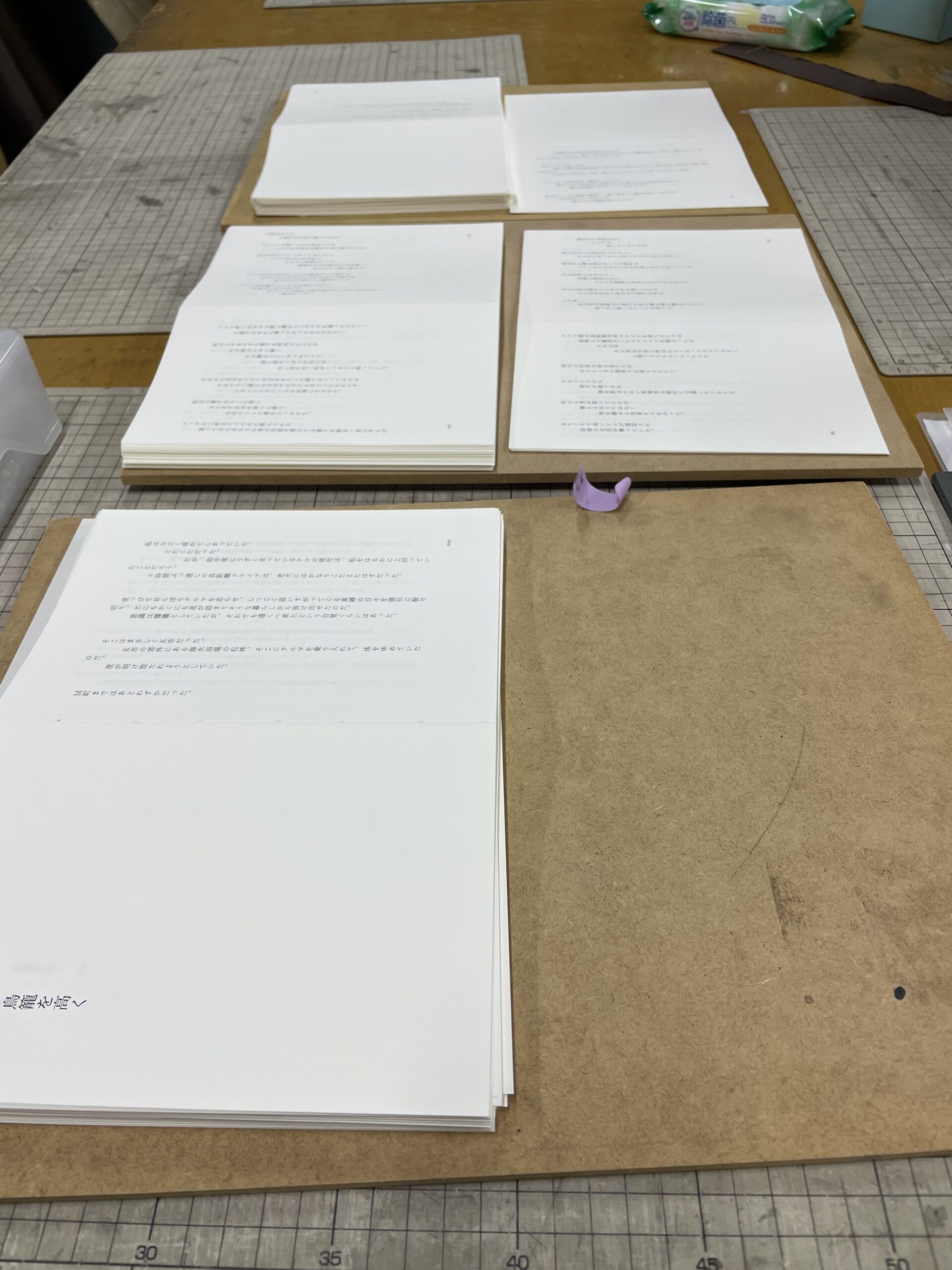 真ん中の紙は糊ひき作業の汚れ防止の紙。
