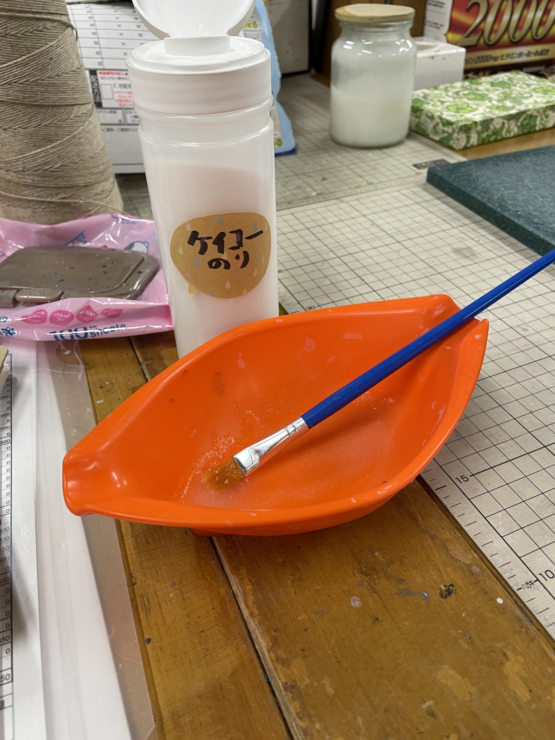 防腐剤無添加のケイコー糊(中性)の粉をパラパラ、水を足して混ぜる。