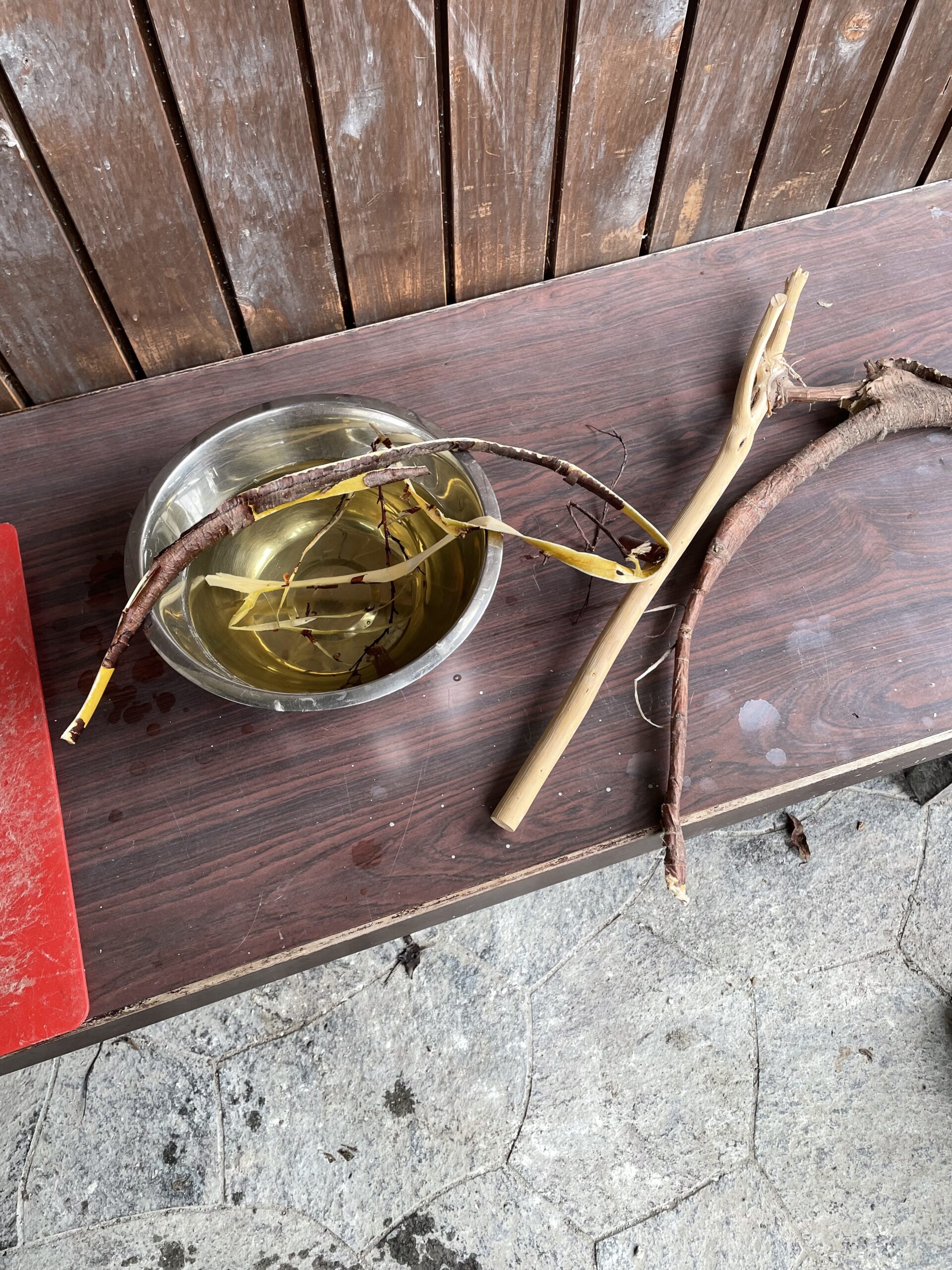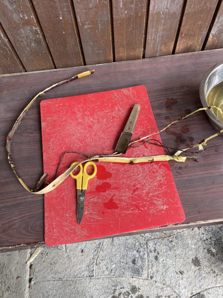 夏場、混ぜる材料にはノリウツギではなくビナンカズラを使うそうだ。↓
