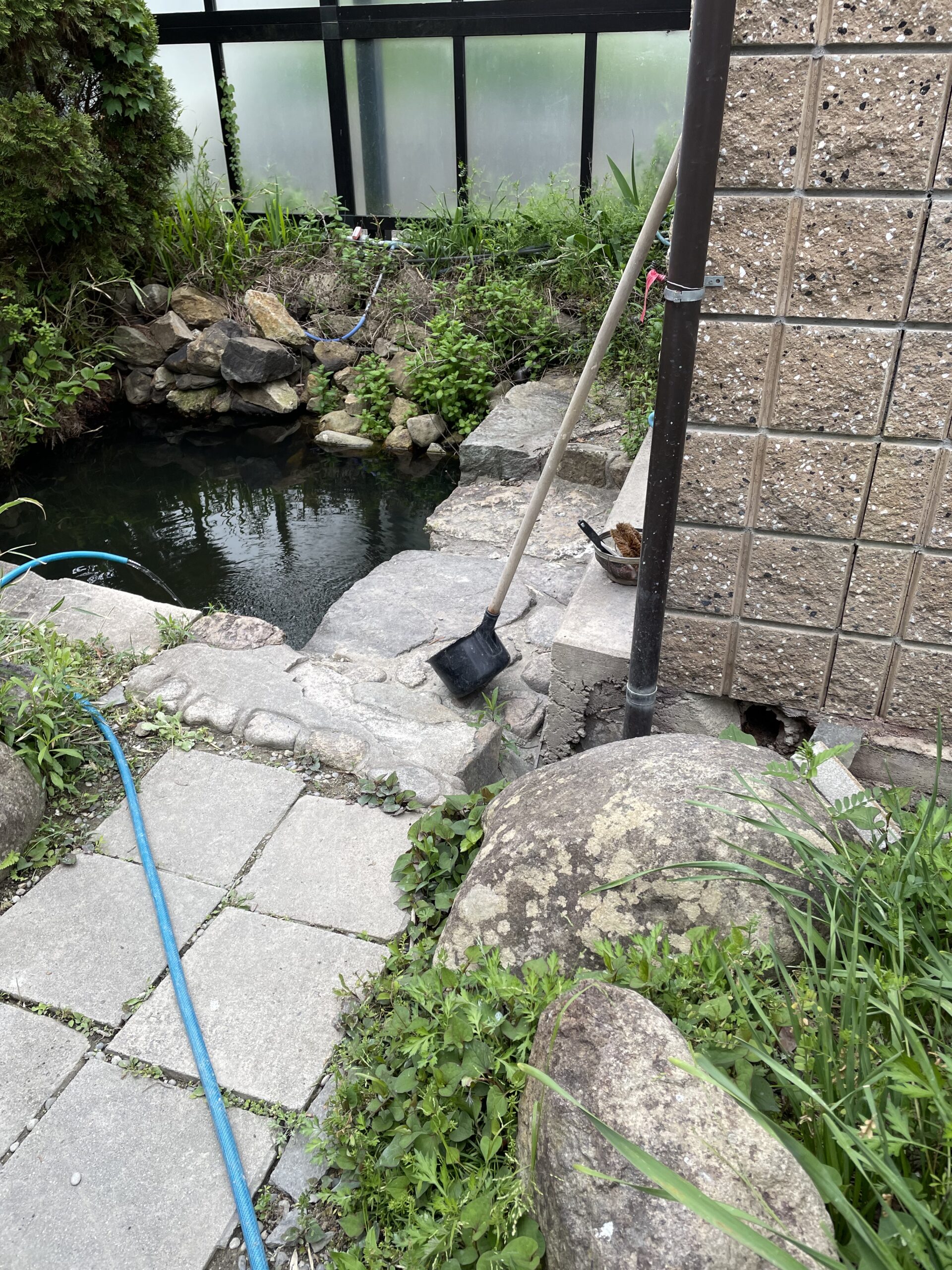 山水が引いてあった。水道水だと材料が混ざらないとのこと。