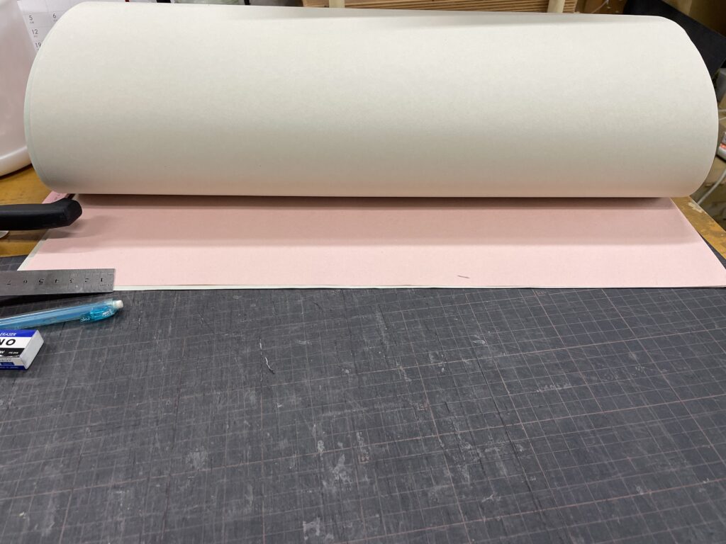 さて荒裁ち後、さらに天地と左右を指定の大きさ160✖️130に化粧裁ちしていく。