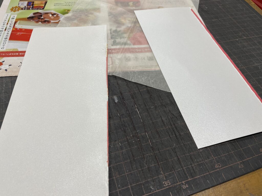 一枚ものに和紙の短冊をつけるやり方は基礎課程でやったのに忘れてしまっている。