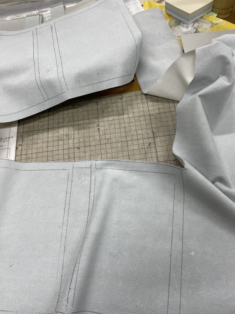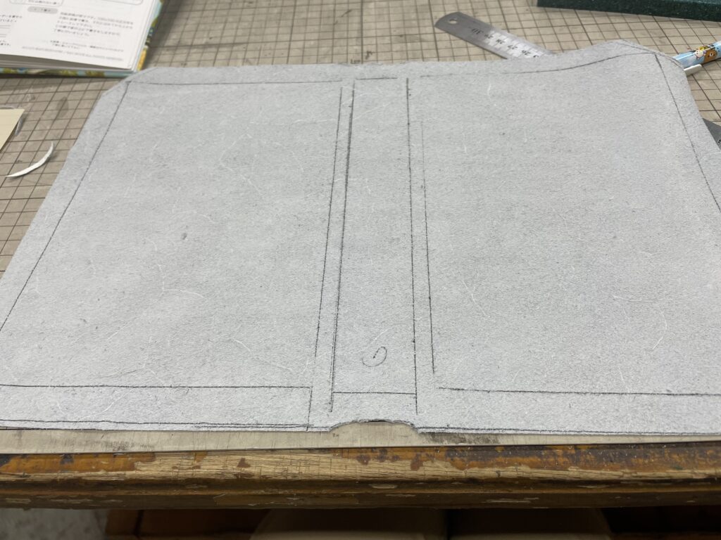 革は丈夫なので、革の裏側にボールペンでボール紙の位置を記す。